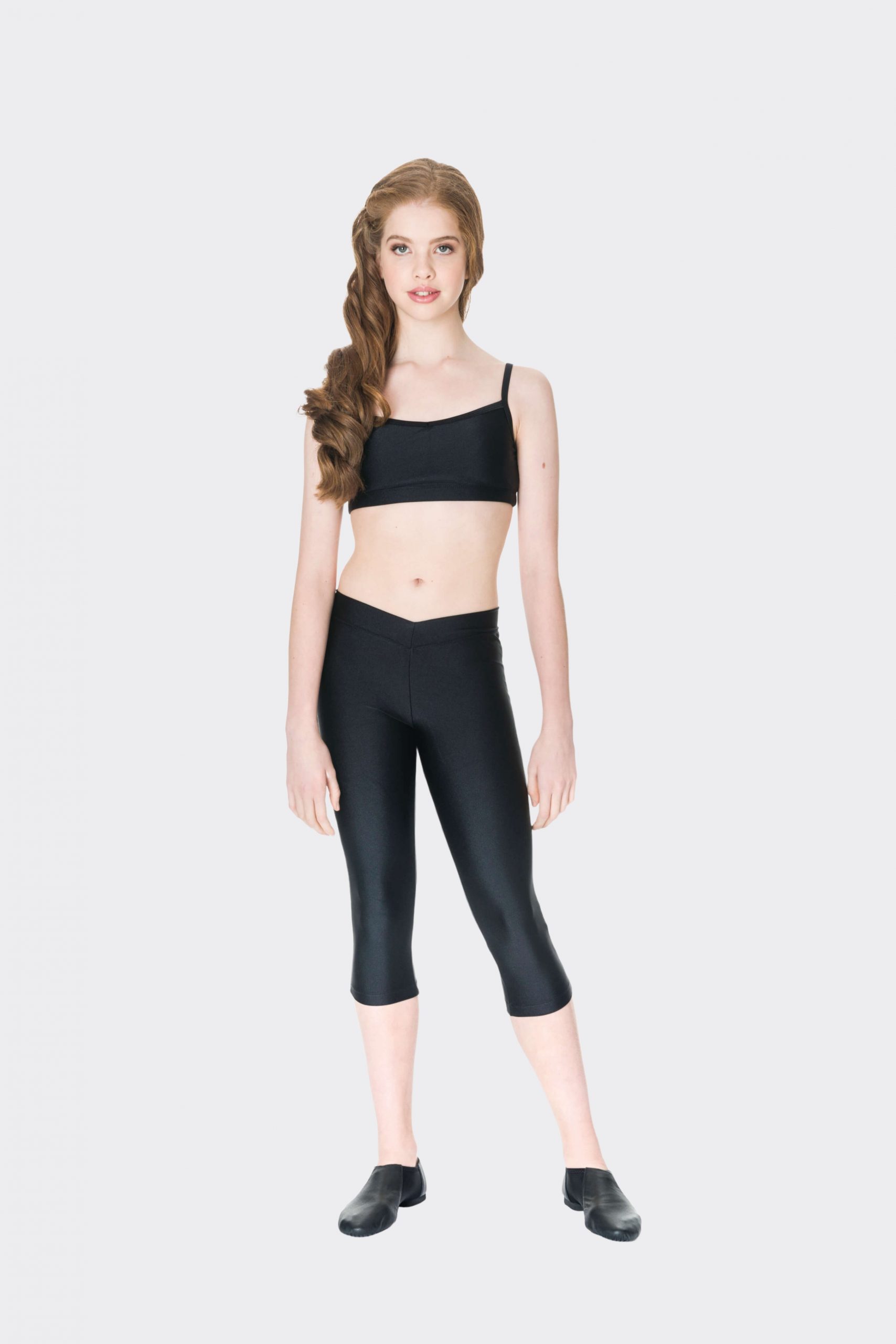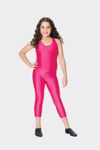 Great for class or as a base for a costume are our nylon 3/4 leggings. Match with the T-Back Singlet Top and T-Back Crop Top.