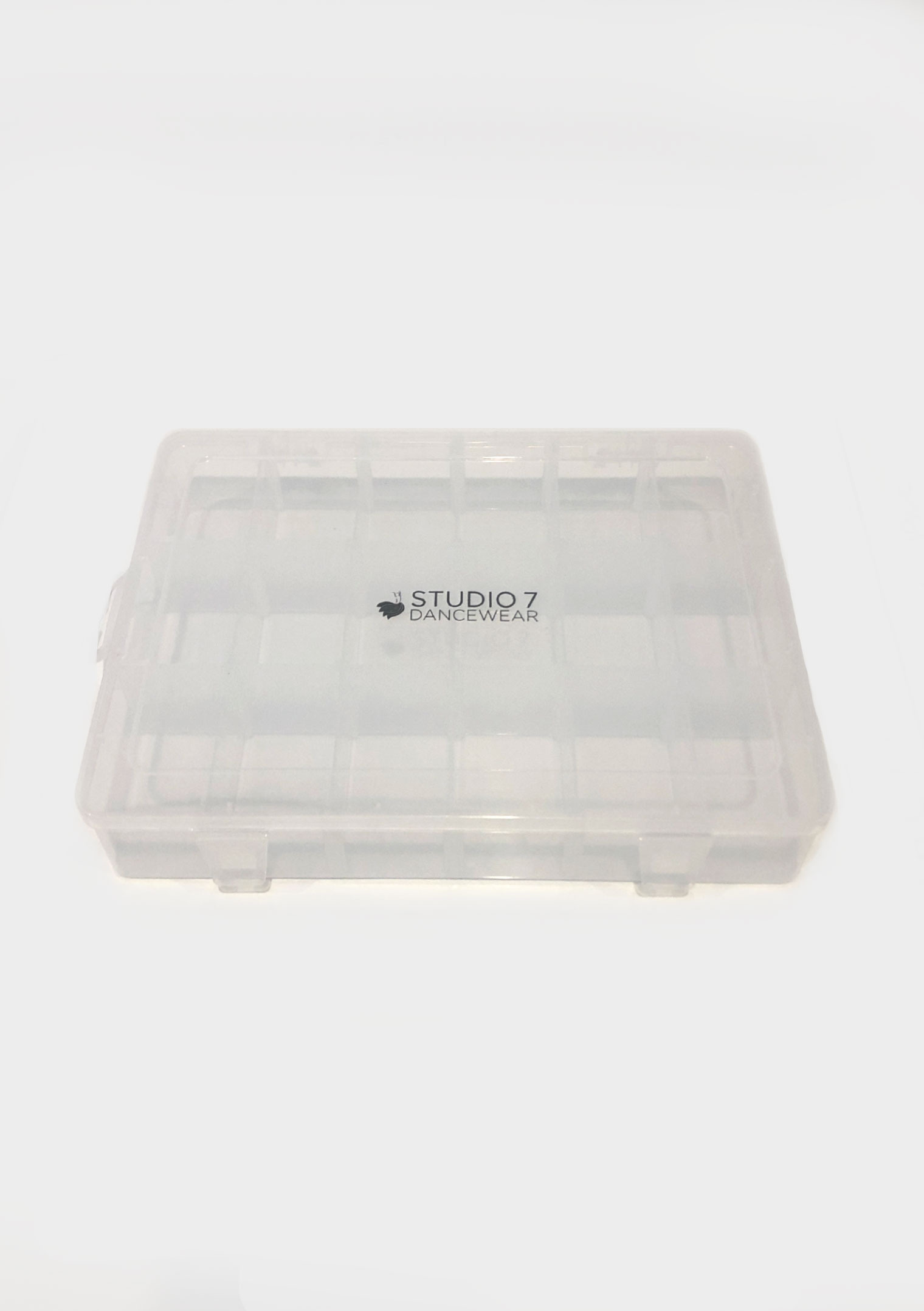 Keeping bobby pins contained can be a challenge! Keep pins, hair ties, bun nets and any other accessory you need contained in this multi-compartment Accessory Box. The box can be configured to suit your needs with removable dividers.