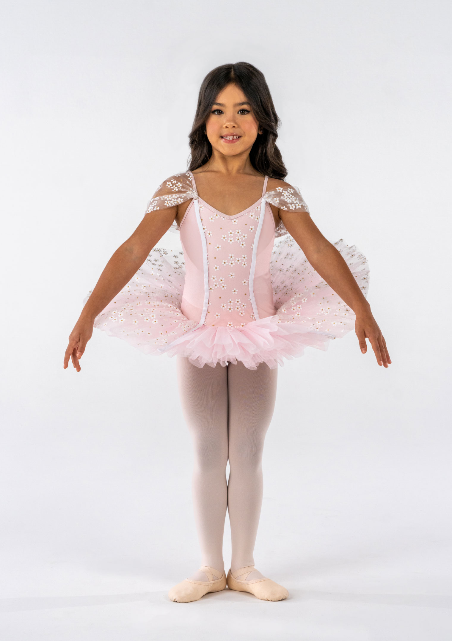 Nothing is more beautiful than a field of daisies, unless you’re wearing it! Be as cute as can be in the Daisy Tutu, accentuated with daisy netting along the tulle, bodice and arm puffs.