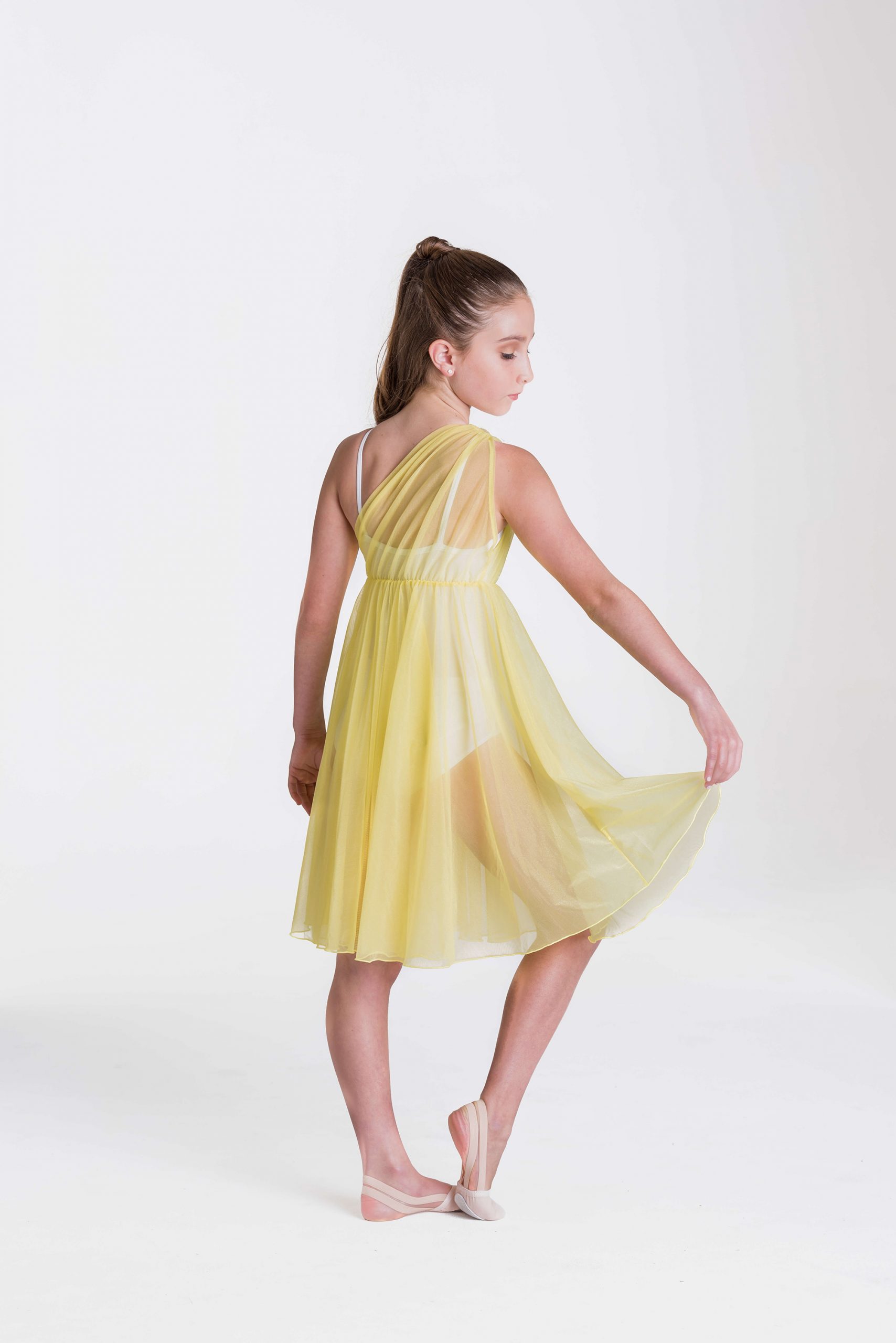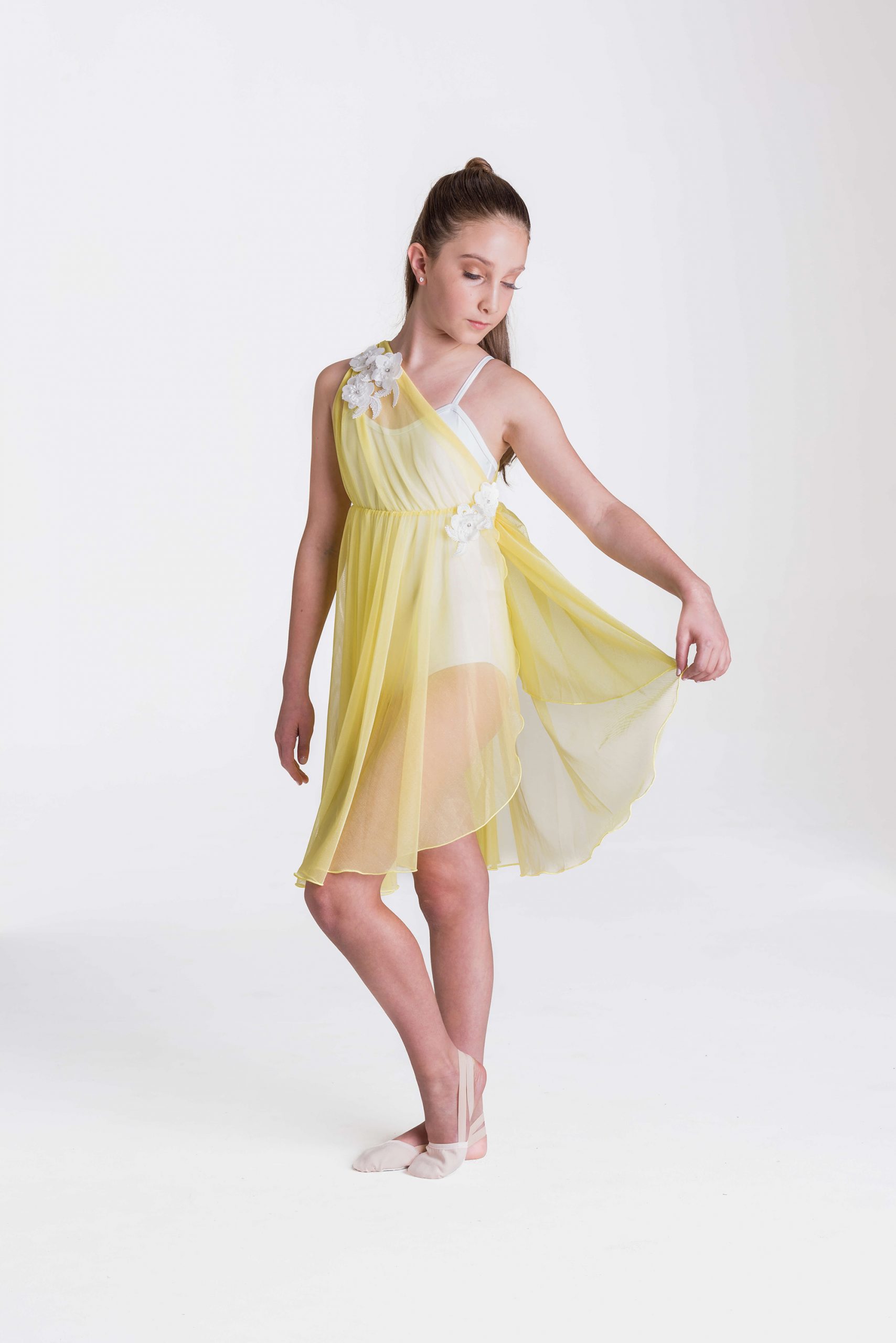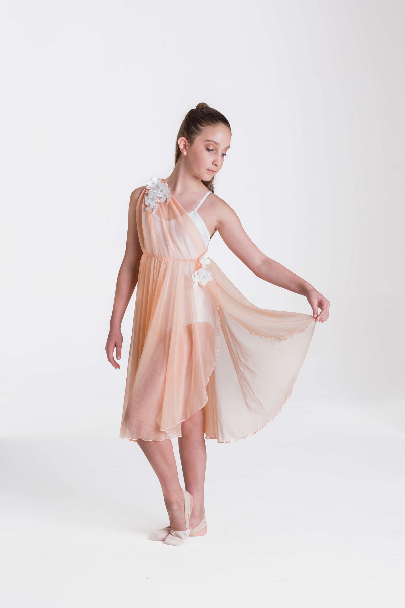Channel all the grace and beauty of a Greek Goddess in our Grecian Lyrical Dress. This stunning lyrical dress features a light mesh overlay on a simple white leotard with delicate flower appliques. Available in pastel colours.