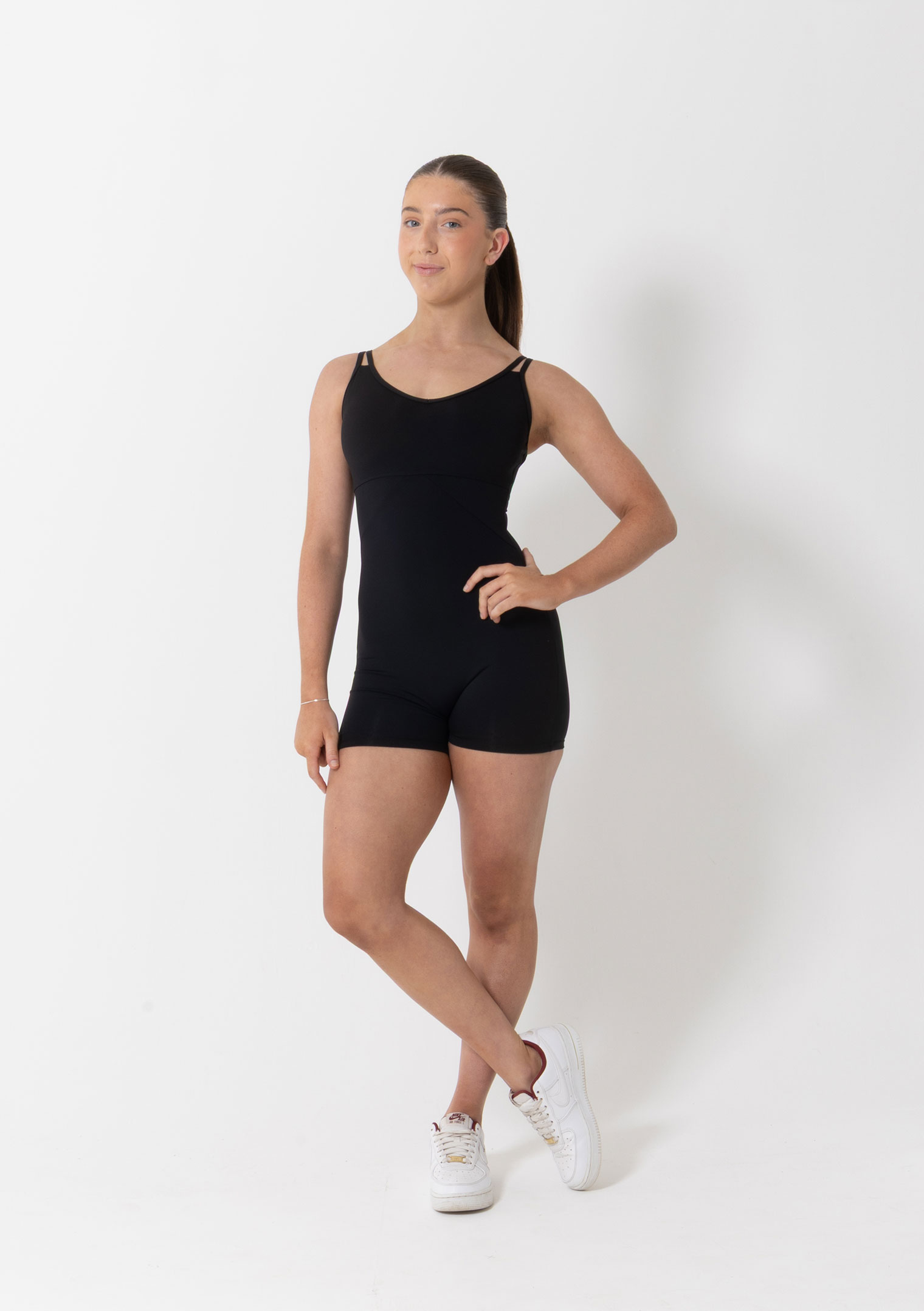 Confident, stylish, and ready to move — the Jasmine Biketard is your go-to for dance class, rehearsal, and performance. Designed with a subtle V-neckline and double shoulder straps, it offers secure support, with the intricate strap design at the back giving you all the style you need in one piece.