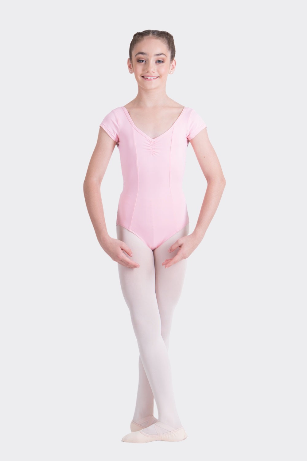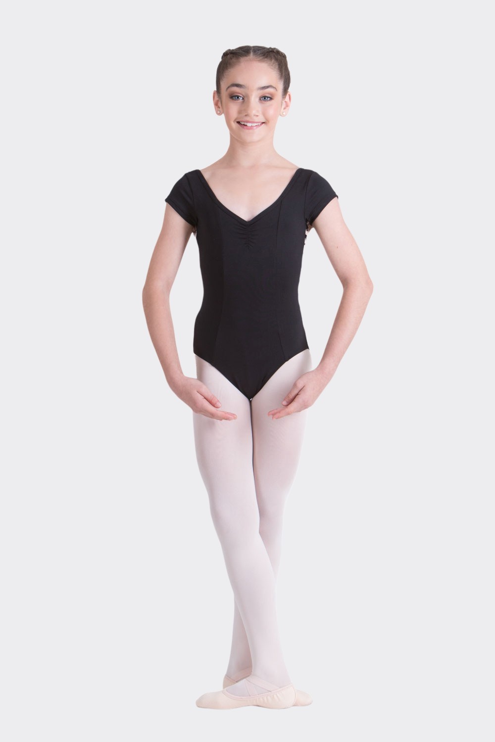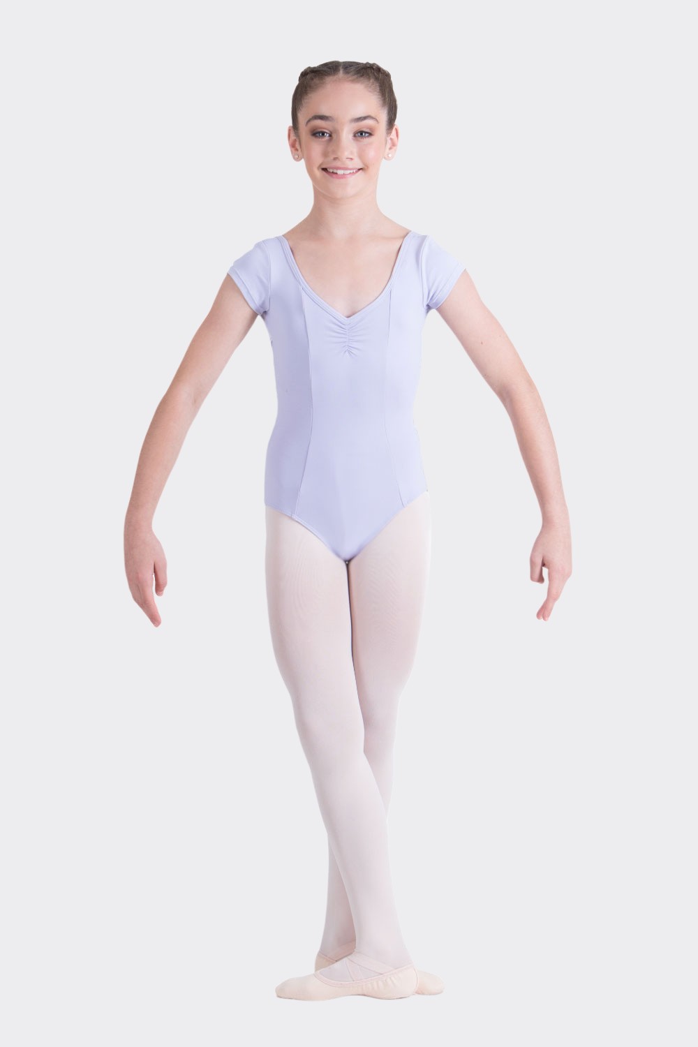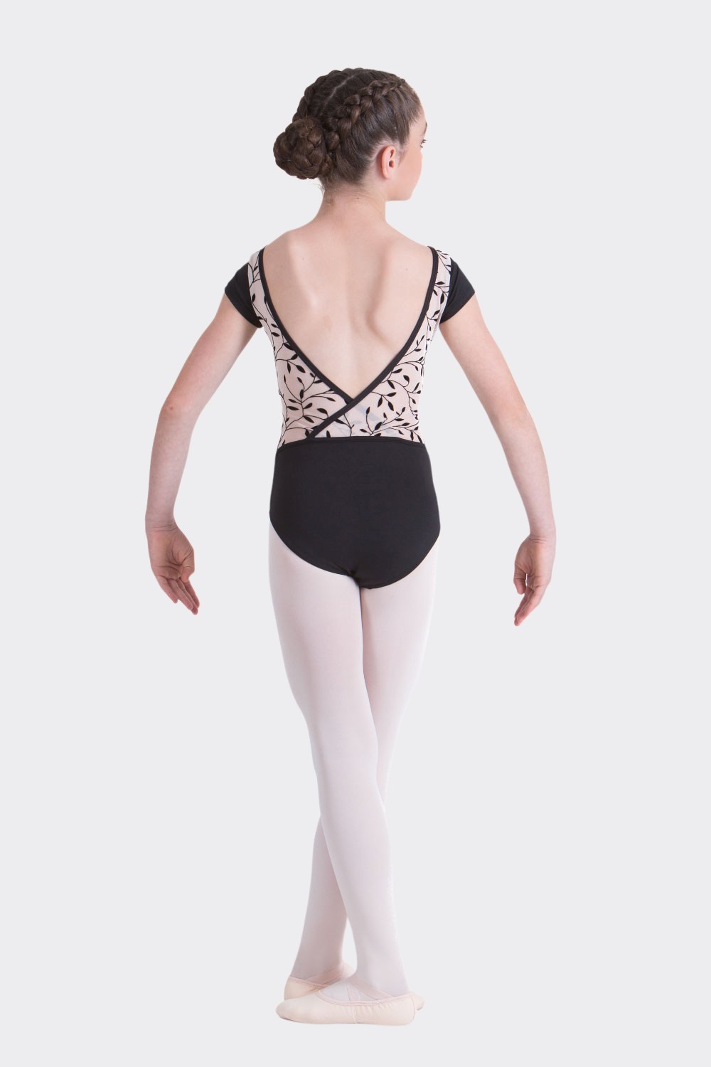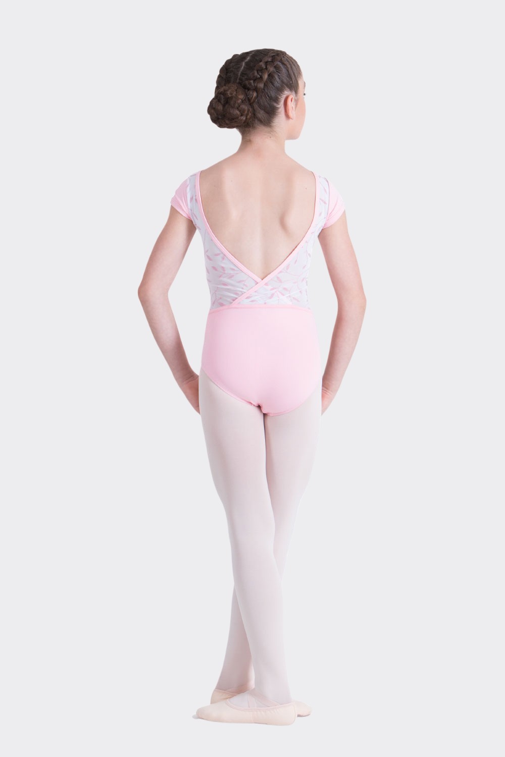 The Lucinda Leotard features a beautiful cap sleeve design, open crossover back and elegant mesh leaf pattern. Pairs with the Alexa, Elena or Hazel wrap Skirts.