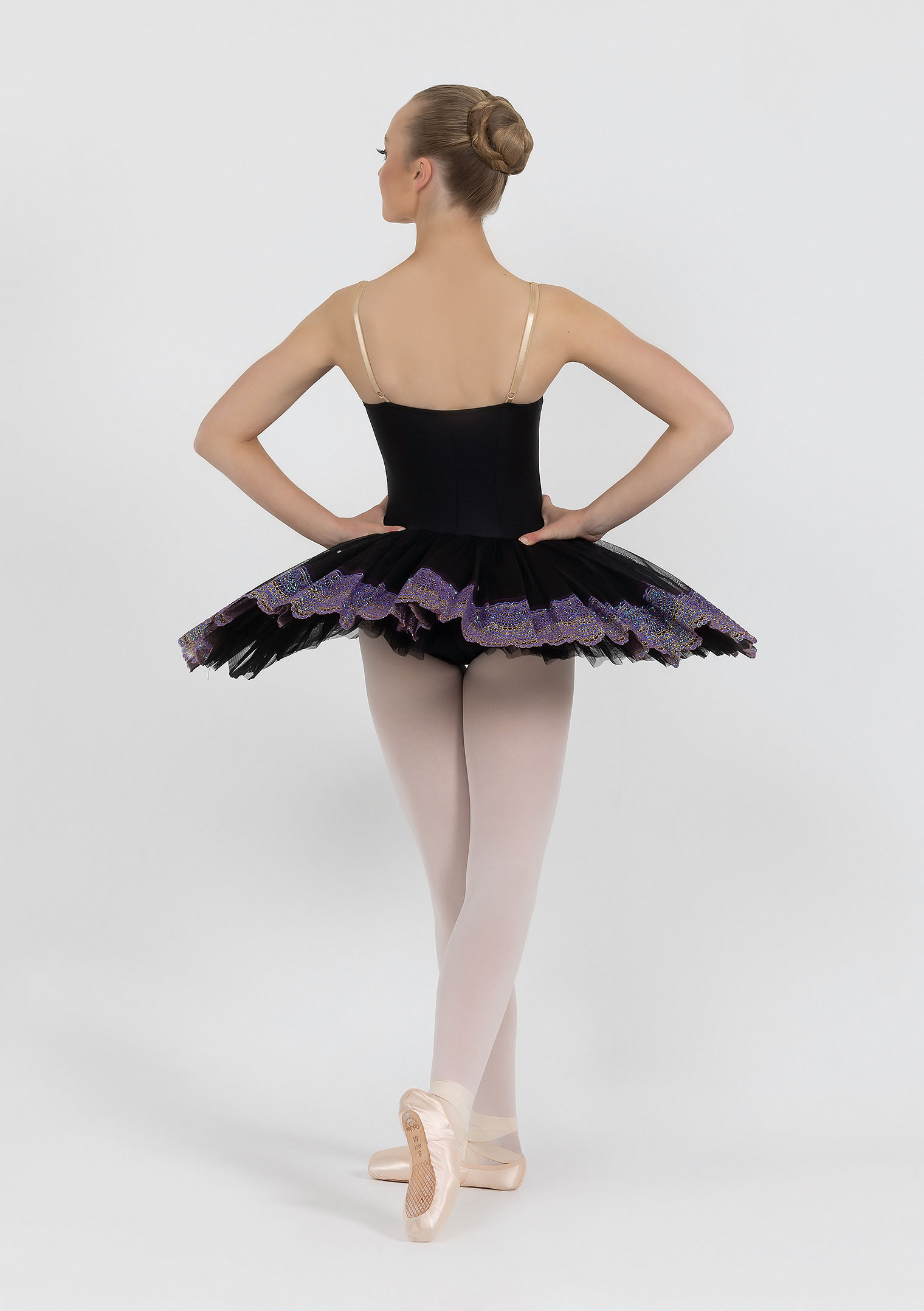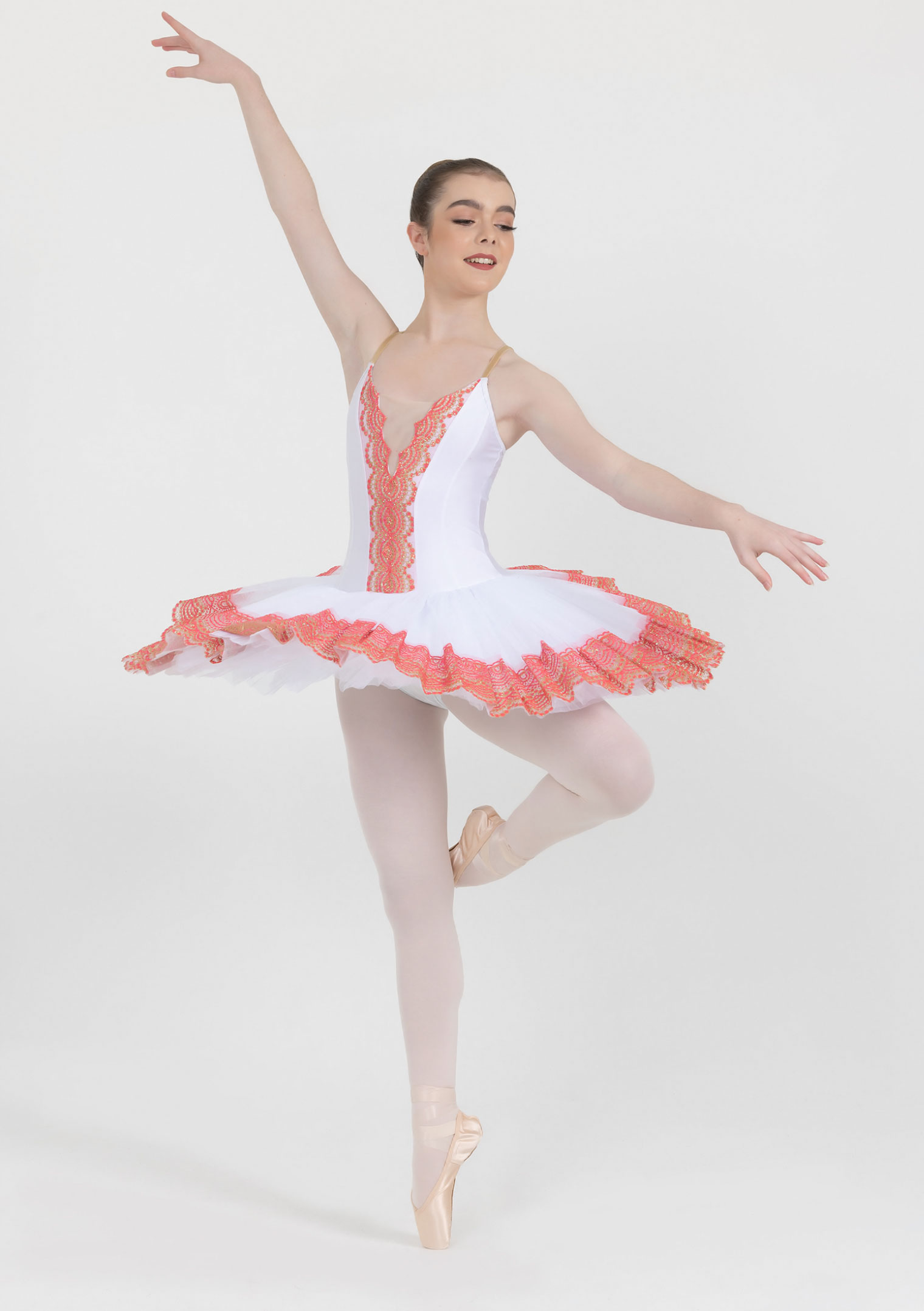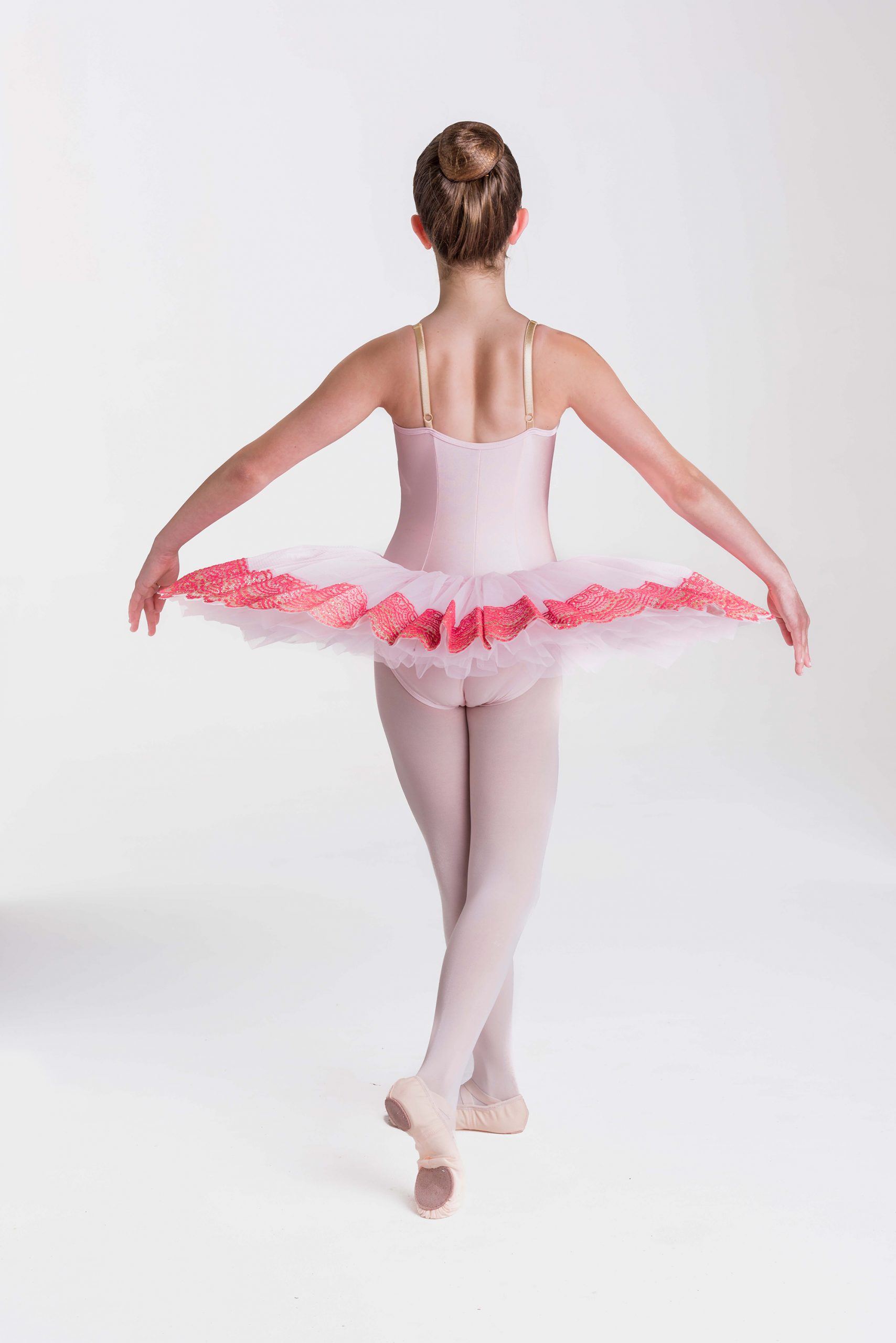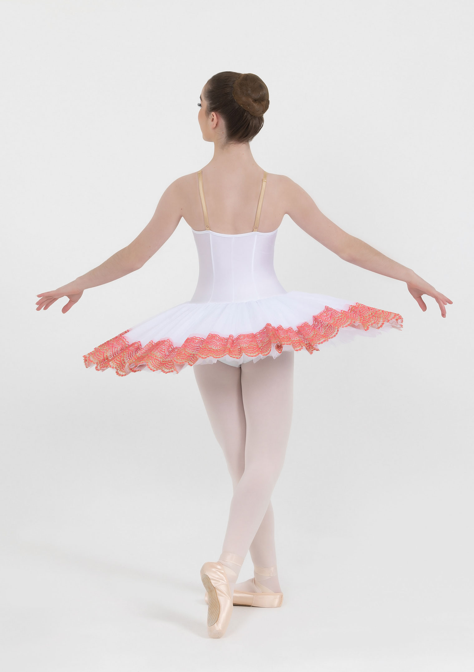The Royal Tutu is a classical design with sparkling lace embellishment on the front of the bodice and around the border of the bell-shaped, five layer skirt. It comes in four beautiful colour combinations.