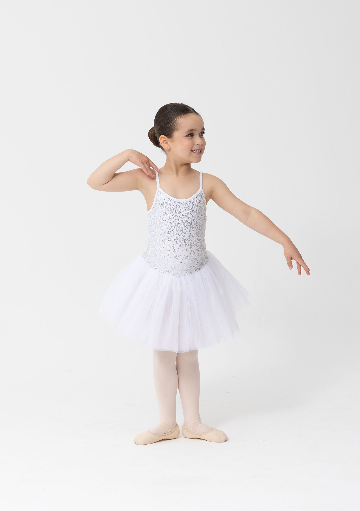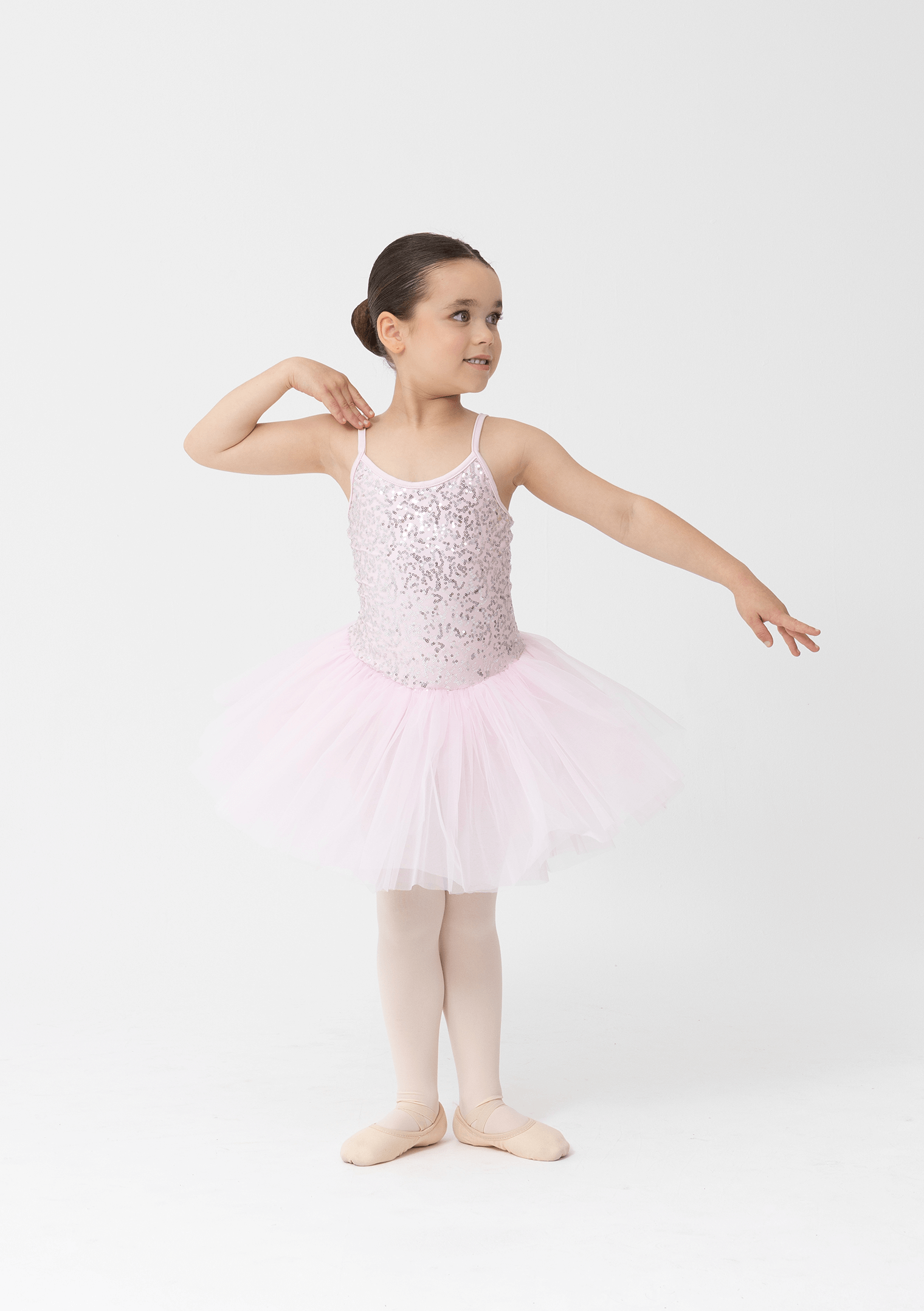 Sequinned Nylon/LYCRA bodice. Soft tulle skirt.
