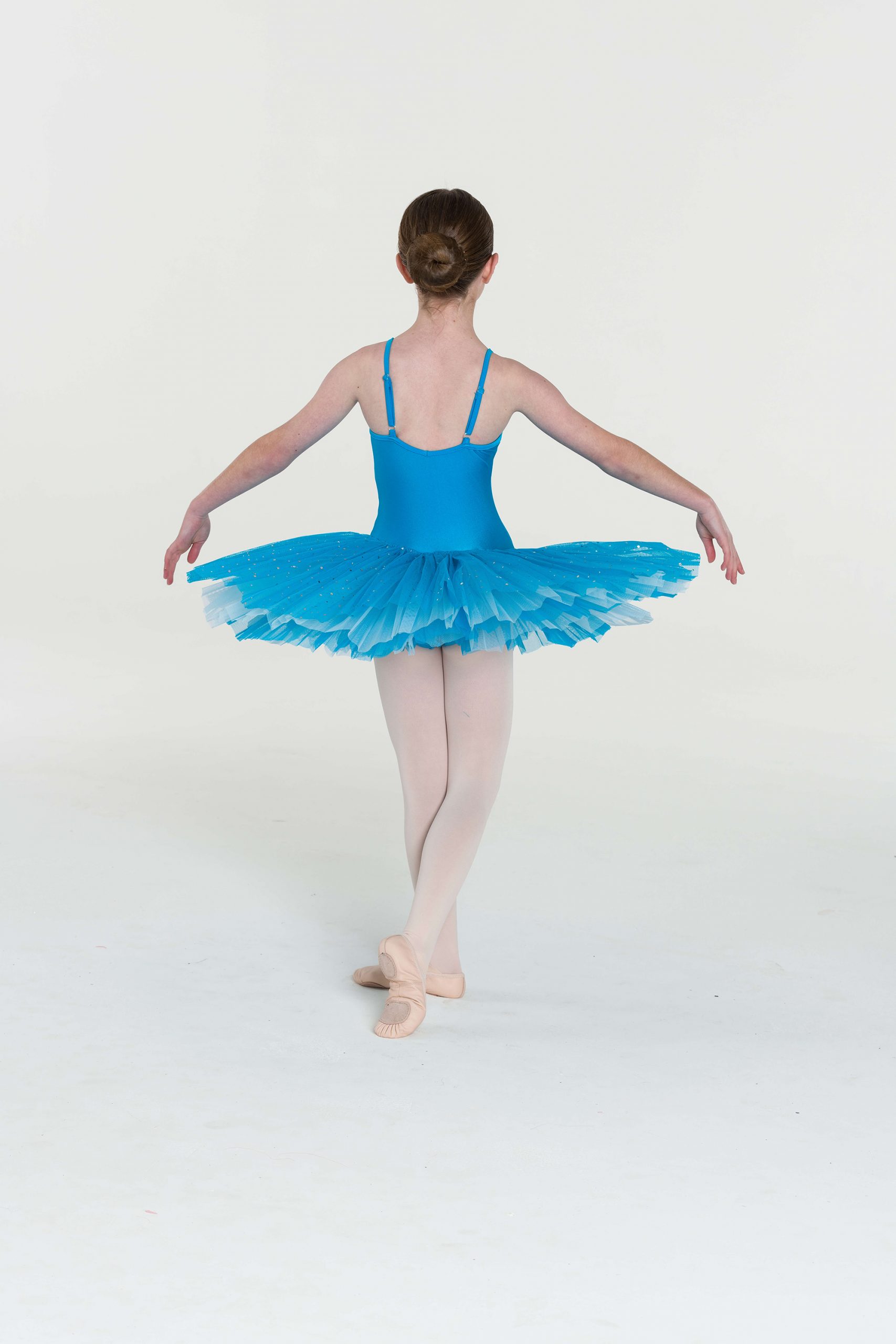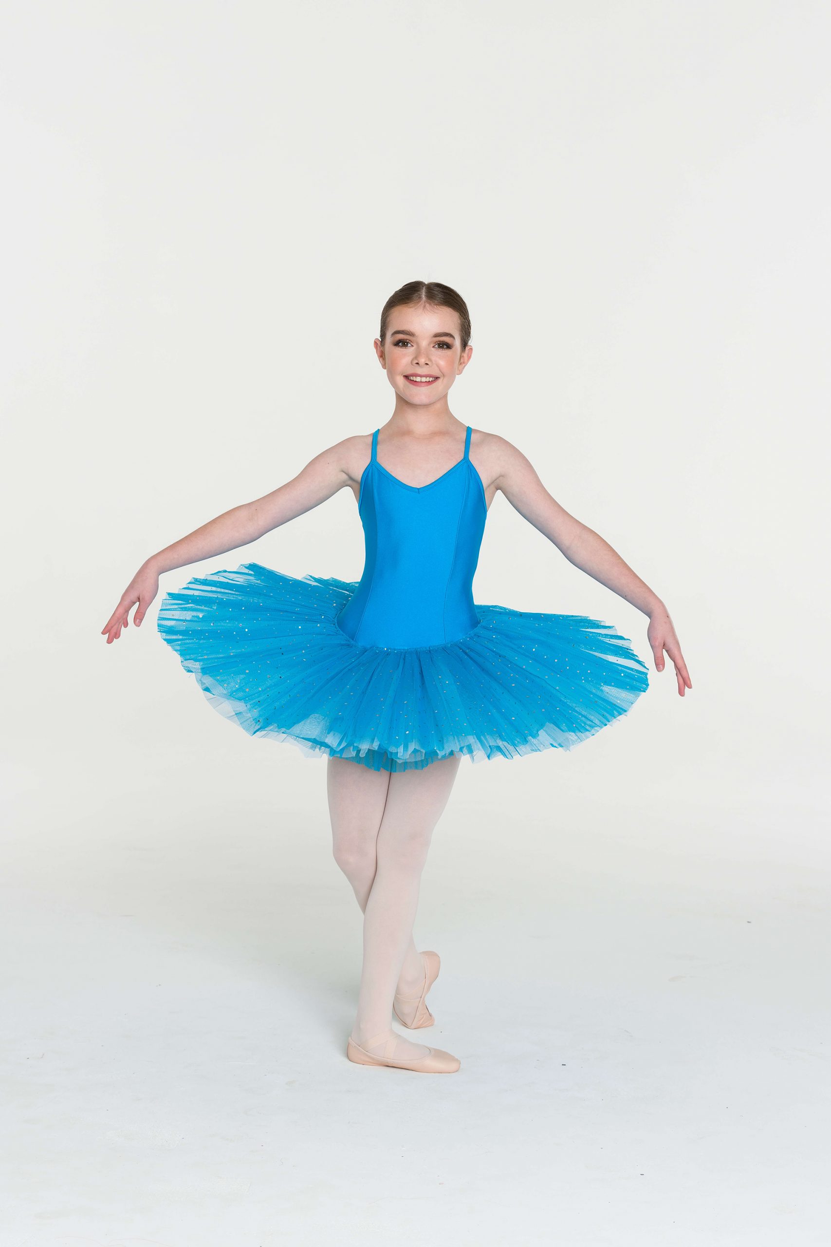 Nylon/LYCRA bodice, five layers of alternating tulle colour, princess line bodice, adjustable straps.