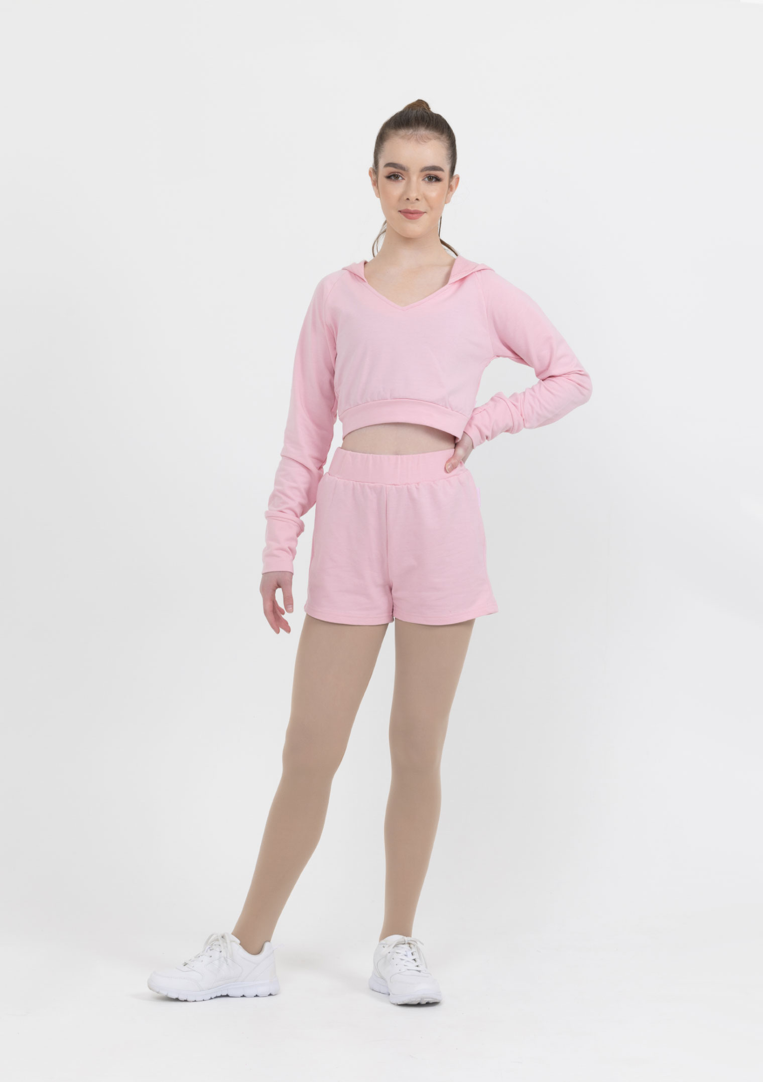 Our Warm Up Cropped Hoodie is an essential item for any dancer. Featuring a soft hood, v-neck and long sleeves with thumb holes, this stylish number is a staple piece for your dance wardrobe.
