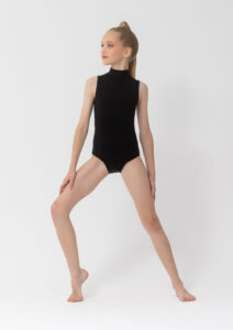 Crafted from premium TACTEL fabric, this leotard with high neckline with secure snap closure, offers a luxuriously soft feel, excellent stretch, and superior breathability for long hours in the studio or on stage.
